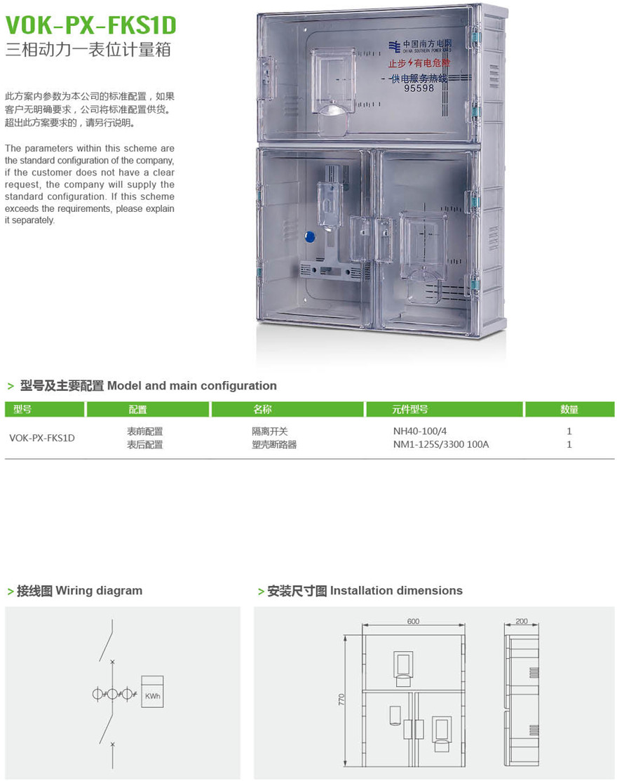 VOK-PX-FKS1D 三相动力一表位计量箱
