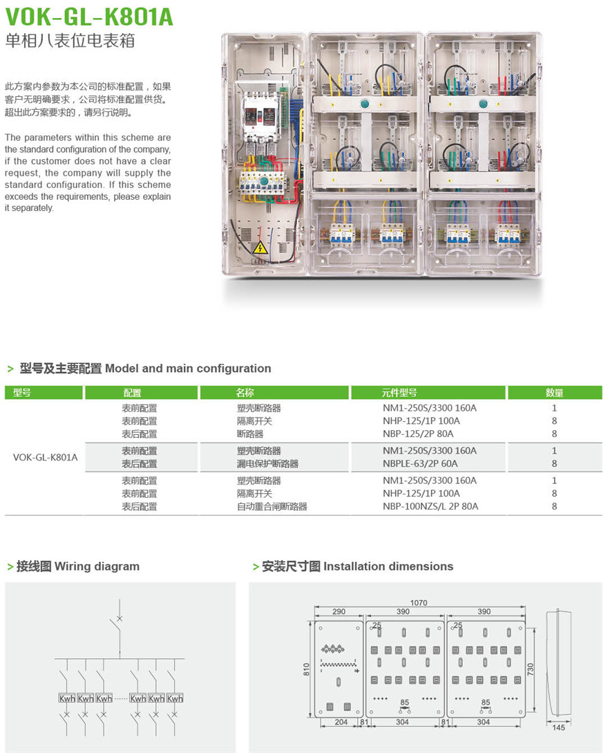 VOK-GL-K801A 单相八表位电表箱