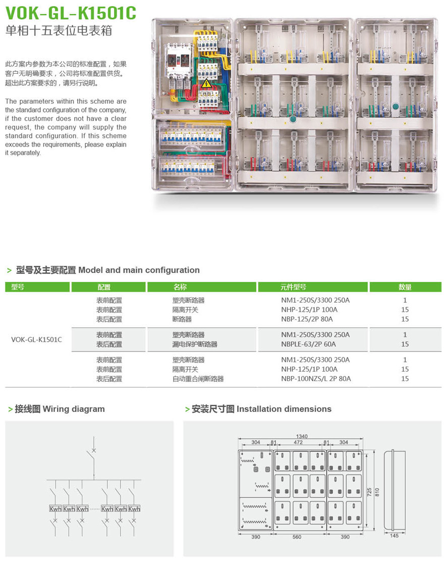 VOK-GL-K1501C 单相十五表位电表箱