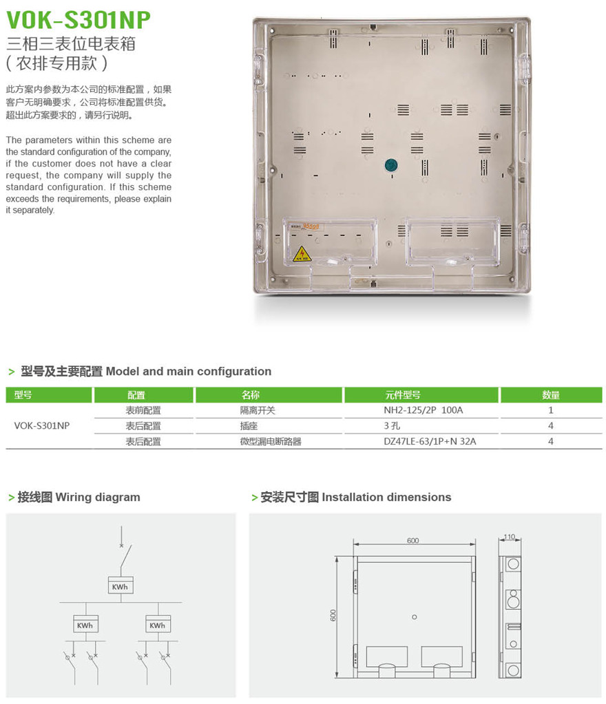 VOK-S301NP 三相三表位电表箱(农排专用款)