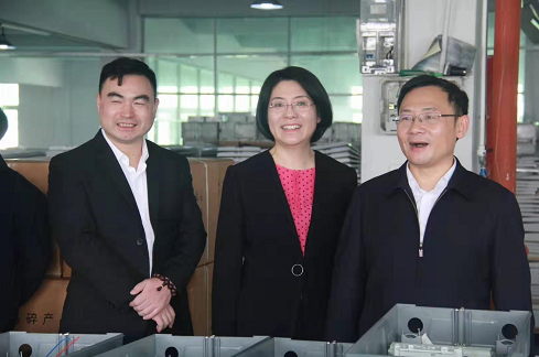 11月4日上午,由县委书记林虹与四川省旺苍县委书记唐文辉带队的仙居、旺苍党政考察团一行来到立博客户端电气,考察企业运行并慰问四川籍员工。立博客户端电气董事长黄剑敏陪同考察。